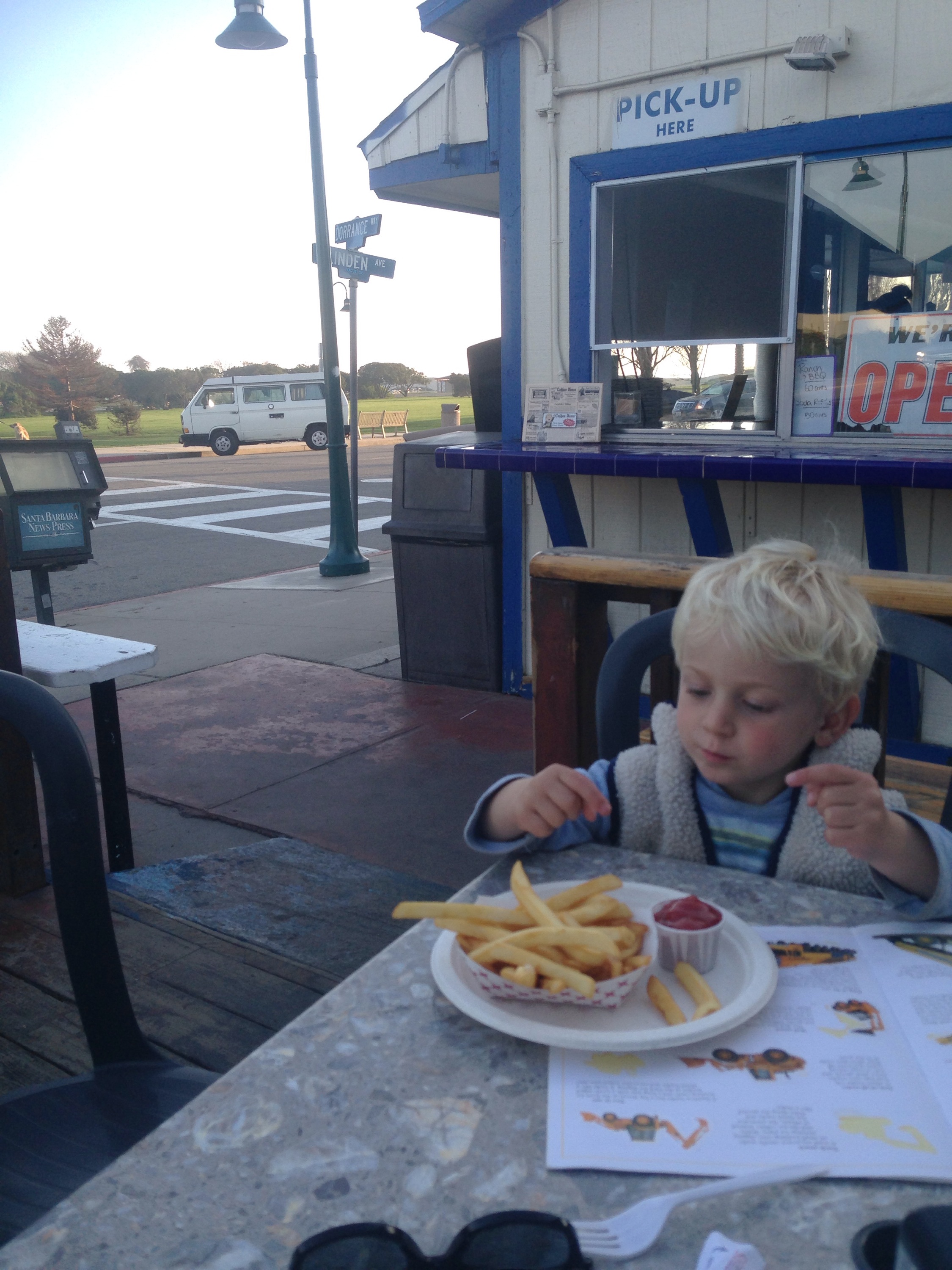 Woods eating some fries at The Spot