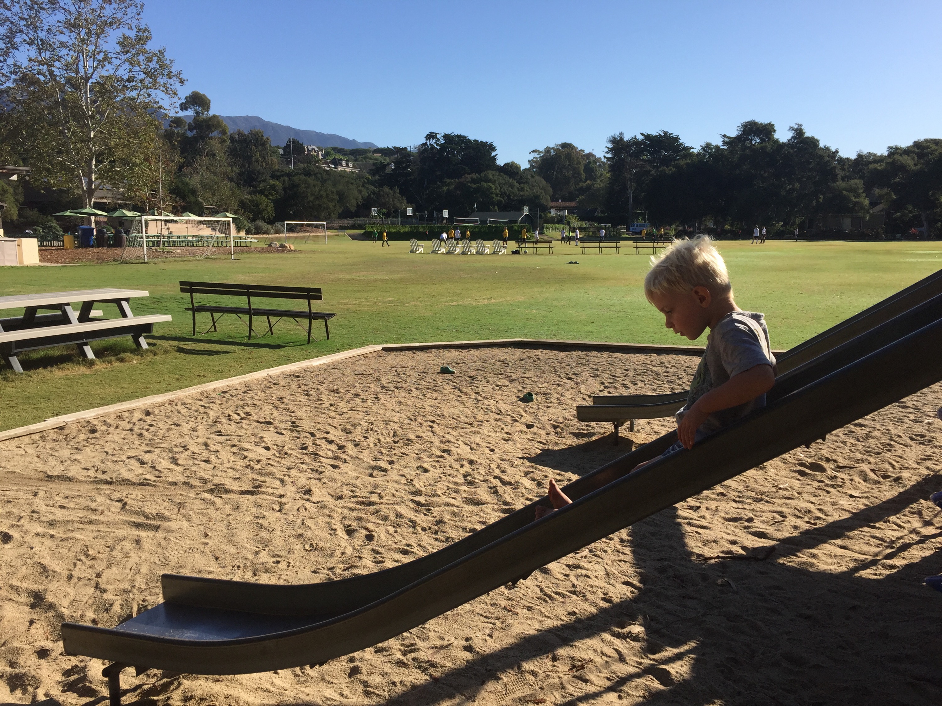 Woods watching daddy play soccer