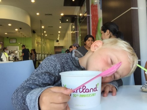 Fake sleeping at yogurtland