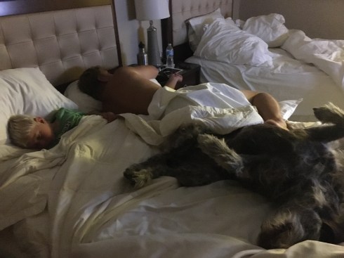 Every night for the last eight days your daddy has slept like this. So happy to have you guys home today!
